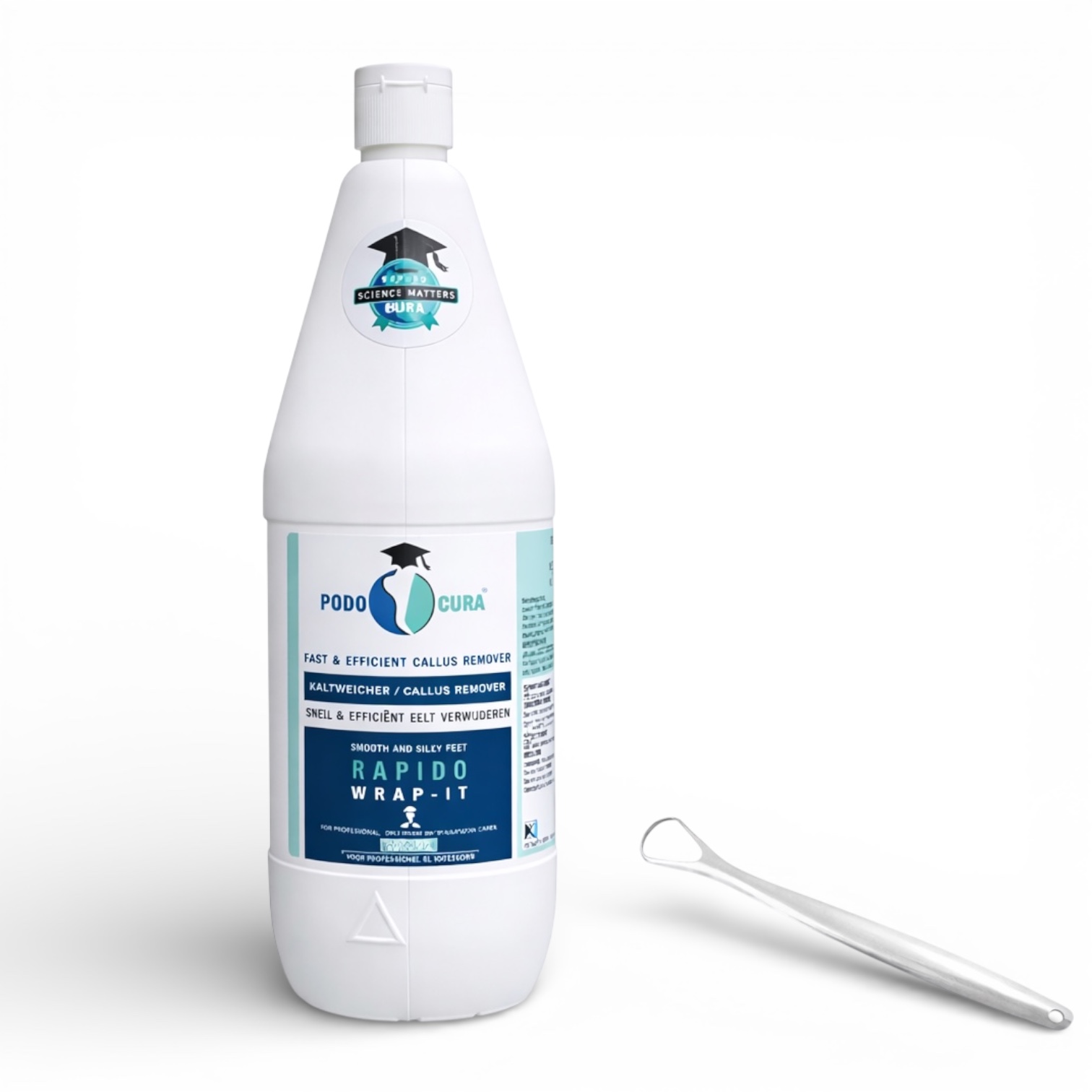 HomePodoCuraPodoCura Rapido Eeltweker 1 liter PodoVoro Speciale Schraper voor Eelt PodoCura Rapido Eeltweker 1 liter€ 29,95 excl. BTW Op voorraad - PodoCura Rapido Eeltweker 1 liter hoeveelheid +In winkelmand Add to Wishlist SKU: 100032 Categorie: PodoCura Tag: Podocure Rapido Eeltweker 1 liter Beschrijving Beoordelingen BeschrijvingPodoCura Rapido Eeltweker 1 literUSA Nr.1 Formule.Snel en efficiënt eelt verwijderen is nog nooit zo makkelijk geweest met de Rapido eeltweker van Podocura. Deze USA formule is werkelijk de Nr.1 onder de eeltwekers.Waarom de Rapido Eeltweker? Sommige doelgroepen zijn bang voor het mes of de Pedicuremotor die de Pedicure gebruikt of kunnen niet stil zitten, daarom is de Rapido een uitkomst voor u en uw cliënt.De structuur van Rapido: De Rapido is een fijne microgel basis eeltweker en is in enkele seconden aan te brengen met b.v. een kleine kwast.Applicatie Rapido: Na het aanbrengen van de Rapido dekt u dit af met bijvoorbeeld plastic keukenfolie of met de speciaal verkrijgbare plastic sokken zodat het product snel zijn werk kan doen.Inwerktijden: Na het afdekken van de Rapido laat u dit 8-10 minuten inwerken op het eelt om het vervolgens op een snelle en makkelijke manier weg te schrapen met de PODOVORO, de Podovoro is een rvs instrument die absoluut niet scherp is en stevig in de hand ligt.Zeldzaam: Over het algemeen is 1 behandeling voldoende om het overtollige eelt te verwijderen. Als de eelt laag erg dik is dan raad Podocura aan om de behandeling te herhalen.Gebruiksaanwijzing : * Vul 10 ml. in een klein maatbekertje. * Breng de microgel aan met een kwast. * Dek dit af met keukenfolie of plastic sok, u kunt het product nu extra in masseren. * Laat dit 8-10 minuten inwerken. * Verwijder het plastic en schraap het eelt weg met de Podovoro. * Was de onzuiverheden weg met handwarm water. * Droog de voeten.Pluspunten: * Ideaal voor hardnekkig eelt. * Speciaal voor oudere eeltlagen. * De Rapido maakt de huid glad om abrupte stilstand van het instrument te voorkomen. * Ideaal bij gebruik oudere cliënten. * Voorkomt wondjes daar u geen mes hoeft te gebruiken. * Zeer zuinig in gebruik. * Makkelijk afwasbaar bij einde behandeling. * Snel & efficiënt. * Professioneel gebruik.. * 1000 ml. verpakking. * Gegarandeerde werking. USA Nr. 1 FormulaRapido Eeltweker the Nr. 1 callus removerRemoving calluses quickly and efficiently has never been easier with the Rapido callus remover from Podocura. This USA formula is truly the NR1 among callus removersWhy the Rapido Callus remover? Some target groups are afraid of the knife or the Pedicure motor that the Pedicure uses and cannot sit still, which is why the Rapido is a godsend for you and your client.The structure of Rapido: The Rapido is a fine microgel base callus remover and can be applied in seconds with a small brush, for example.Application Rapido: After applying the Rapido, cover it with, for example, plastic kitchen foil or with the specially available plastic socks so that the product can do its work quickly.Processing times: After covering the Rapido, let it work on the callus for 8-10 minutes and then scrape it away quickly and easily with the Podovoro, the Podovoro is a stainless steel instrument that is absolutely not sharp and lies firmly in the hand.Rare: In general, 1 treatment is sufficient to remove the excess callus. If the callus layer is very thick, Podocura recommends repeating the treatment.Instructions : * Fill 10ml into a small measuring cup. * Apply the microgel with a brush. * Cover this with kitchen foil or plastic sock, you can now massage the product extra. * Let this work for 8-10 minutes. * Remove the plastic and scrape away the calluses with the Podovoro. * Wash away the impurities with lukewarm water. * Dry the feet.Pros * Ideal for stubborn calluses * Especially for older callus layers * The Rapido smoothes the skin to avoid sudden stoppages of the instrument. * Ideal for older clients * Prevents wounds as you do not need to use a knife. * Very economical in use * Easily washable at the end of treatment. * Fast & efficient * Professional use. * 1000ML packaging * Guaranteed operationReviews Nog geen reviews. Gerelateerde producten Product openen € 5,95 excl. BTW PodoCura Plastic Sokken In winkelmand Add to Wishlist Product openen € 3,29 excl. BTWPodoCura Rapido Penseel voor het aanbrengen van Rapido Callus Remover In winkelmand Add to Wishlist Product openen € 8,95 excl. BTWPodoVoro Speciale Schraper voor Eelt In winkelmand Add to Wishlist Product openen € 14,95 excl. BTWPodoCura Shoopers Shoe Recover Wipes In winkelmand Add to Wishlist